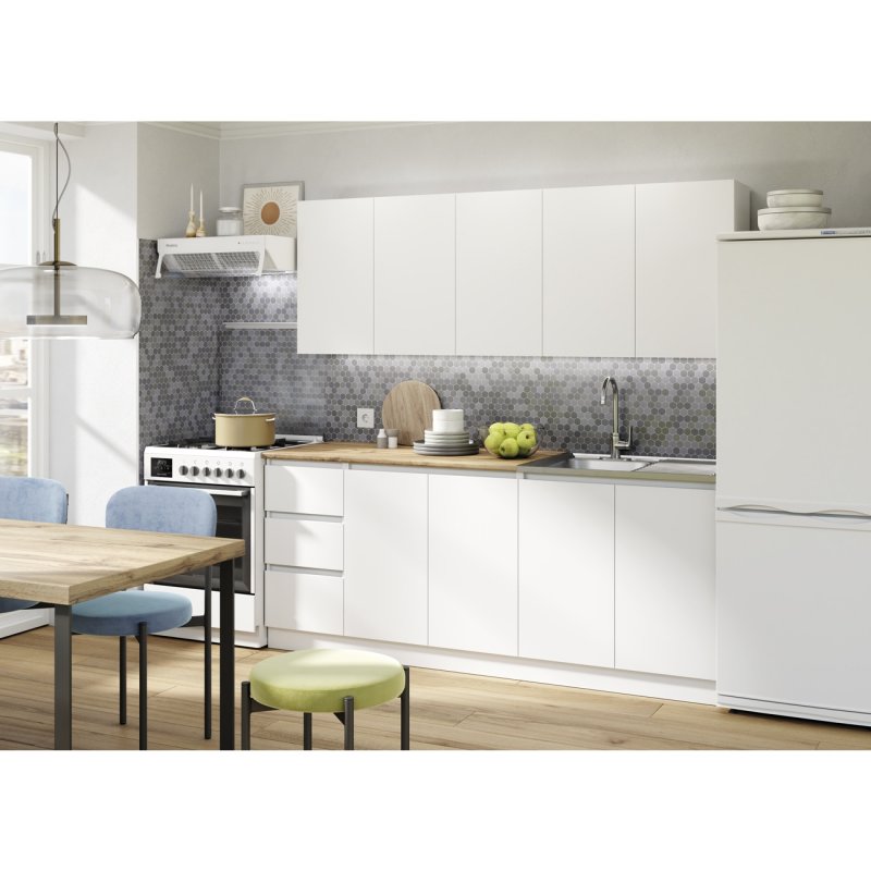 КУХОННЫЙ ГАРНИТУР "МОРИ"-ЭТО ВОПЛОЩЕНИЕ СКАНДИНАВСКОГО СТИЛЯ. ТАКИЕ ДЕТАЛИ,КАК МИНИМАЛИСТИЧНЫЙ ДИЗАЙН,БЕЛЫЕ ГЛАДКИЕ ФАСАДЫ И ВСТРОЕННЫЕ РУЧКИ СОЗДАЮТ ЛЕГКИЙ ВНЕШНИЙ ВИД,А ТАКЖЕ ПОДЧЕРКИВАЮТ ПРОСТОТУ И БОГАТЫЙ ФУНКЦИОНАЛ.