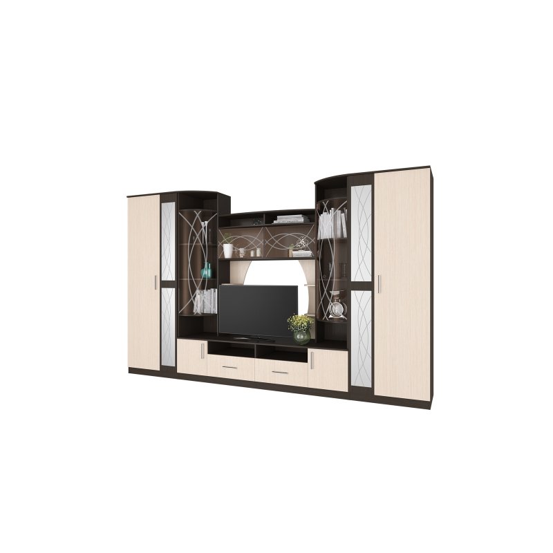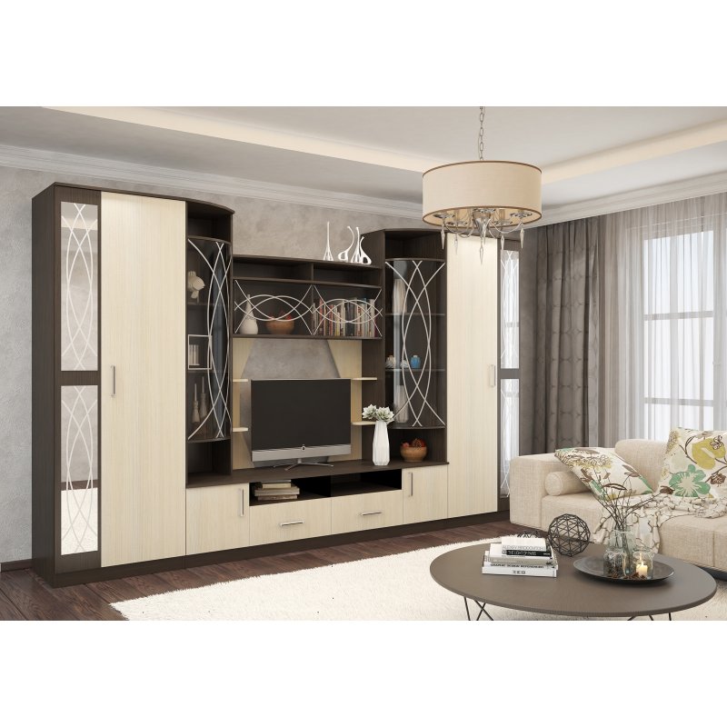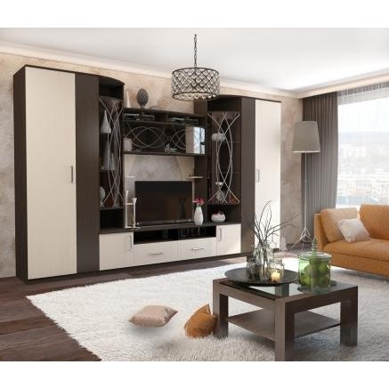 В гостиной "Атланта" строгость линий разбавляется симметричным витражным рисунком, который создает настроение и придает всей композиции элегантную индивидуальность.