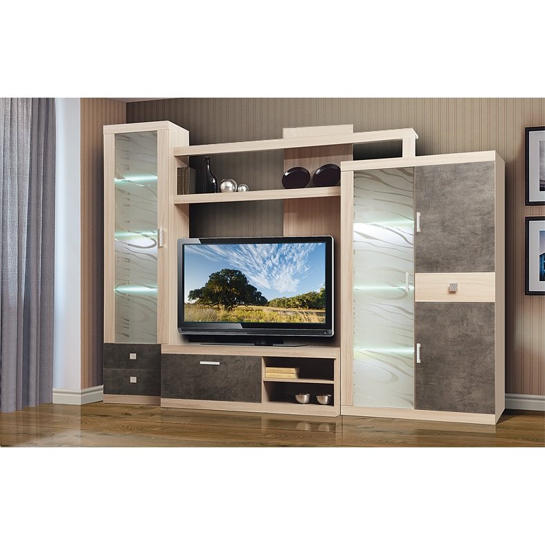 Стенка Браво сочетает в себе красоту, мягкую цветовую гамму и удобство. Фасады украшены стеклянными вставками с пескоструйным рисунком.