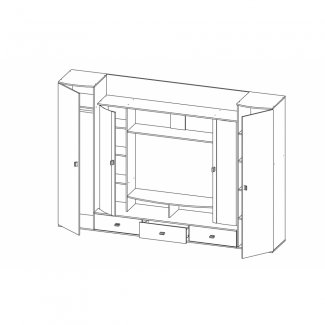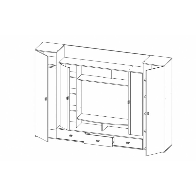 Большая стенка "Лаванда-1", имеющая три выдвижных ящика и четыре отделения, оснащенных распашными дверцами. Светлые фасады,украшаются замысловатым рисунком.