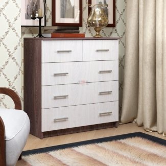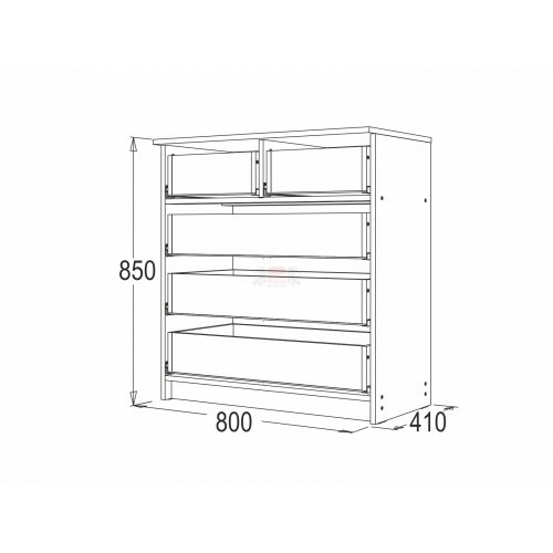 Компактный и функциональный комод К-10 давно стал любимчиком покупателей. Благодаря своим размерам, модель выглядит аккуратно, не занимает много места, но в то же время вмещает довольно много. Также удобно и расположение ящиков:3 больших удобных вместительных ящика на шариковых направляющих ( полное выдвижение ), а в верхней части - еще 2 дополнительных ящика для мелочей. Основой комода является собственный плинтус, что позволяет комоду прочно и надежно стоять на полу.
