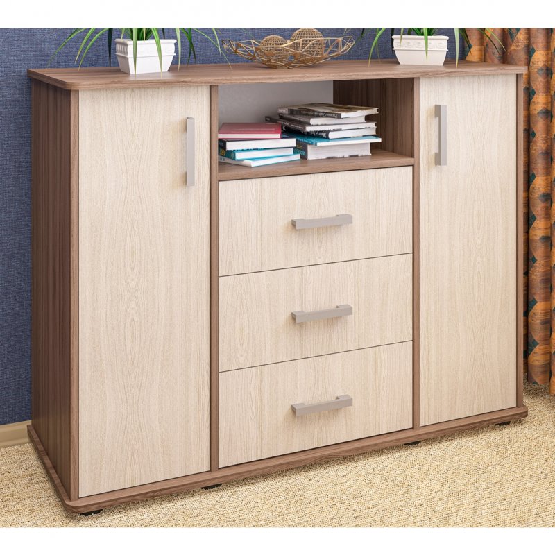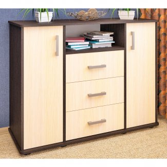 Большой и вместительный комод К-15 будет прекрасным и функциональным дополнением любого помещения. И это неудивительно, ведь центральная часть модели содержит 3 выдвижных ящика и открытую нишу. По бокам симметрично расположены вместительные ниши, скрытые за распашными дверцами - по 3 ниши с каждой стороны. Также комод оснащен регулируемыми опорами, благодаря чему даже на неровном полу комод будет устойчиво осуществлять свои функции. Разнообразие цветовой гаммы и достоинства модели позволяют подобрать комод под любой интерьер и использовать его не только дома, но и в гостиницах и офисах. Используются шариковые направляющие ( полное выдвижение ящиков ).