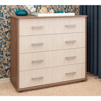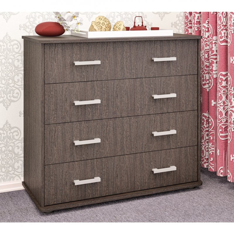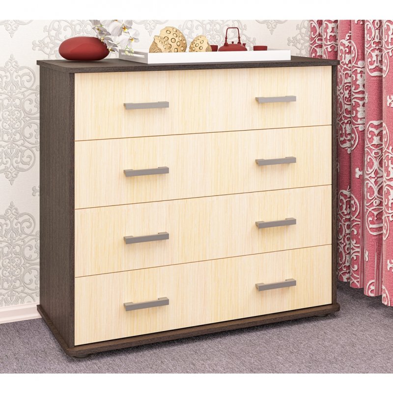 КОМОД-К-2 отличается простотой конструкции. Модель оборудована четырьмя выдвижными ящиками на шариковых направляющих ( полное выдвижение ).. Фасады ящиков имеют одинаковую величину. На них имеются прочные, современные ручки. Комод установлен на пластиковые опоры цвета хром, регулируемые по высоте. Благодаря таким характеристикам, К-2 великолепен в практическом и функциональном применении