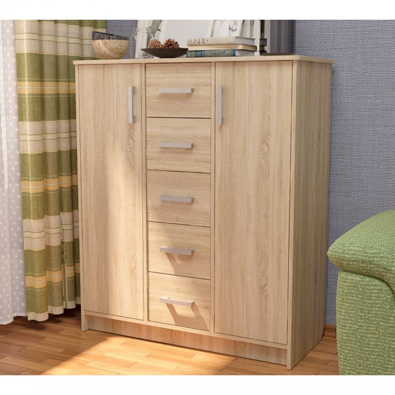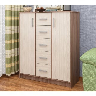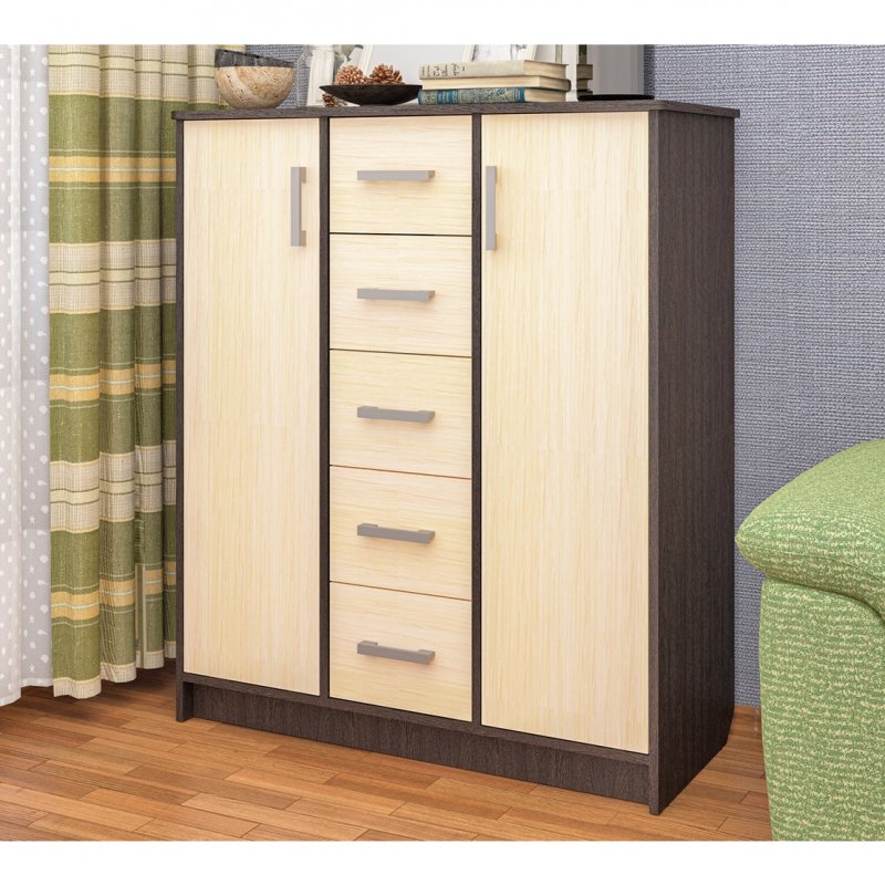 КОМОД-3. Большой, удобный и функциональный комод К-3 не оставит равнодушным никого. Он имеет нестандартный дизайн и практичен в использовании. В центральной части комода расположены 5 удобных ящиков квадратной формы на роликовых направляющих. В правой и левой частях за распашными дверями находятся 6 вместительных ниш – по 3 с каждой стороны. Основой комода является собственный плинтус, что позволяет ему прочно стоять на полу. Дополняют изделие современные ручки цвета хром. Благодаря габаритам, комод очень вместителен. А сама конструкция даёт больше возможностей для сортировки и удобного расположения вещей. Используются шариковые направляющие ( полное выдвижение ).