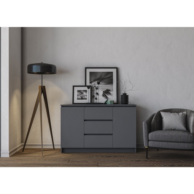 Комод "МОРИ" коллекция представлена в двух актуальных оттенках этого сезона-в минималистичном белом и в сдержанном графите.Данные цвета не потеряют своей актуальности в течение долгого времени,а так же помогут создать строгий и изысканный стиль в интерьере.Отсутствие  ручек-главное преимущество данной модели.Роль ручек выполняют сами фасады.Открывание ящиков производится за счет пространства между планками и фасадами.
