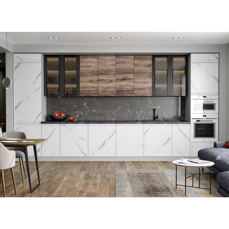 Дизайнеры современных кухонь предлагают комбинировать фасады как в цветовой гамме, так и структурой фасада. Такая комбинация создаст эстетическую изысканность и визуальную привлекательность. Идите в ногу со временем и создавайте уют и тепло Вашего дома или квартиры.