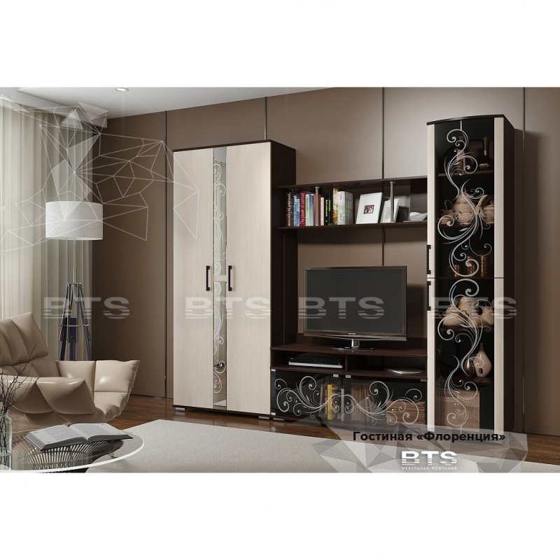 Утонченность эпохи Возрождения послужила вдохновением при создании этой гостиной. Лаконичные формы и четкие линии сочетаются со стремлением к изысканности интерьера благодаря узорам на стеклянных дверцах. Светлый и темный цвета дополняют друг друга, выгодно расставляя акценты. Дух Италии создает романтичное настроение в гостиной и наполняет комнату уютом. Выбранная Вами комплектация коллекции "Флоренция" станет идеальным дополнением интерьера Вашей гостиной.