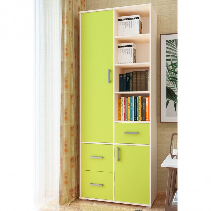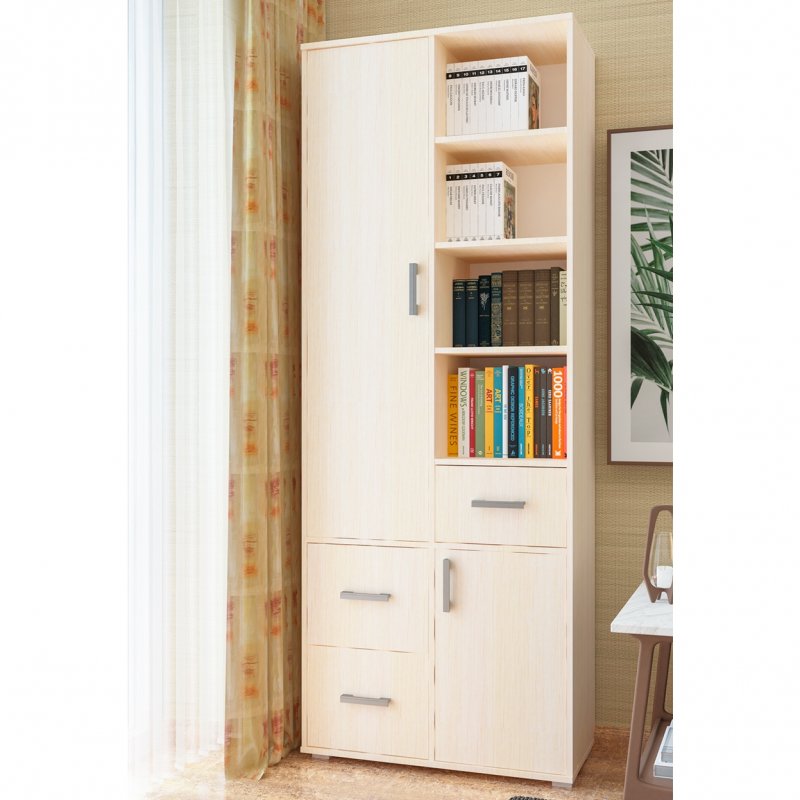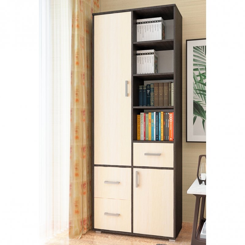 Топаз – это современный двухдверный шкаф, функциональный и эргономичный. В левой части он имеет два удобных выдвижных ящика и 4 вместительных ниши, скрытых за распашной дверью. Справа снизу также небольшой шкафчик с полками и выдвижной ящик для мелочей. Особый интерес представляет блок с открытыми нишами. Такой нетипичный для шкафа контраст, а также асимметричное расположение ящиков и ниш придаёт Топазу уникальность. Шкаф стоит на регулируемых опорах, позволяющих сглаживать неровности пола. Топаз, без сомнений, послужит отличным домашним помощником и добавит яркости в любой интерьер.