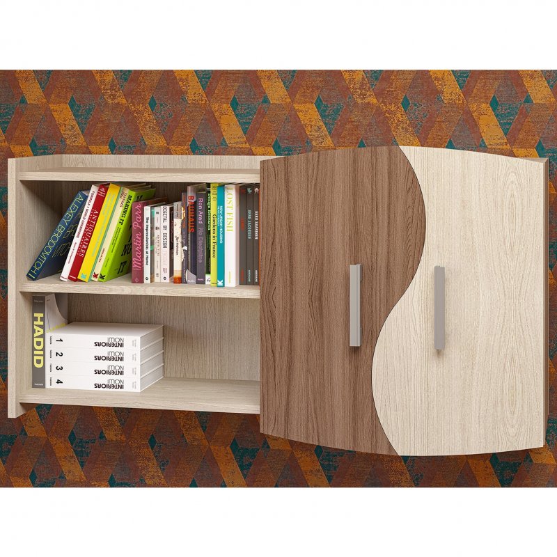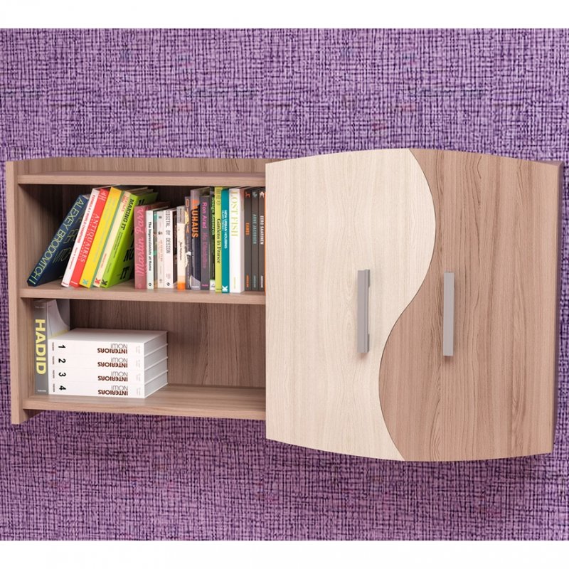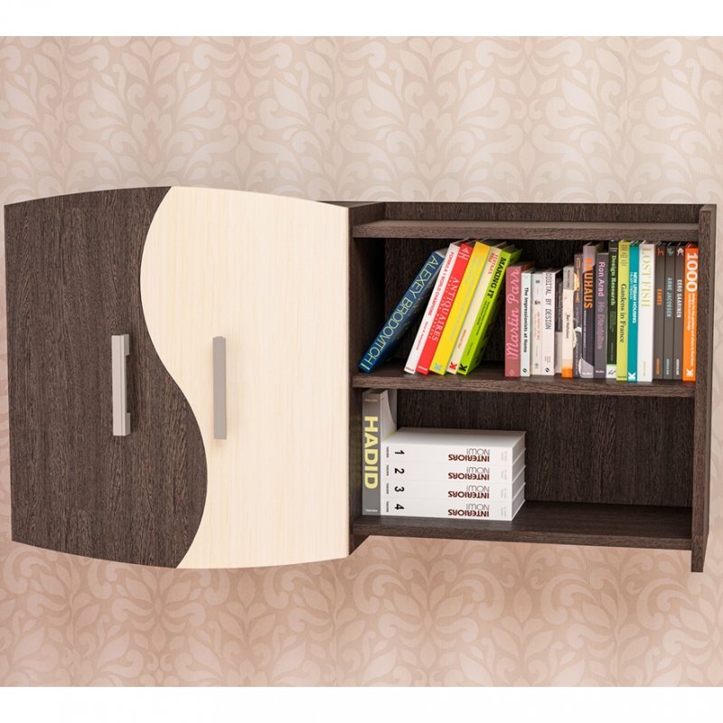 Полка навесная ПН-3 состоит из двух частей: две полуоткрытые полки и небольшой шкаф с полками и фигурными распашными дверцами. Именно эта часть придаёт всему изделию необычный вид. Крыша полки создает дополнительную рабочую поверхность, куда можно поставить любимые аксессуары или цветы. К тому же полка универсальная и собирается на левую или правую сторону, что является очень удобным при формировании дизайна помещения. Полка модели ПН-3 – удачное приобретение для офиса и дома.