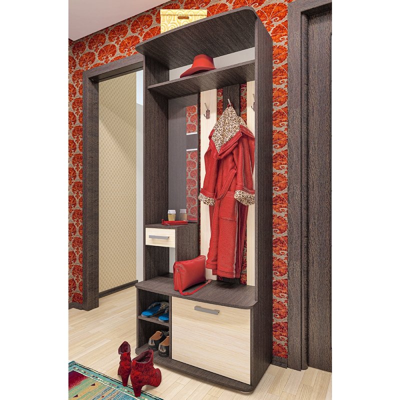 Отличный вариант для малогабаритных квартир – прихожая ПР-10. Меньше метра в длину, она впишется в любой интерьер и станет незаменимым домашним помощником. Несмотря на небольшие размеры, модель может вместить в себя немало одежды, обуви и головных уборов. Для этого в правой части ПР-10 есть открытая вешалка с крючками. Под ней – ящик для обуви с откидной дверцей, который также служит полкой для сумок, портфелей, зонтов. Кроме того, в верхней части прихожей оборудована полка для головных уборов и шарфов. Ну и какая же прихожая без ши для обуви. Прихожая ПР-10 миниатюрна и эргономична, в ней нет ничего лишнего.