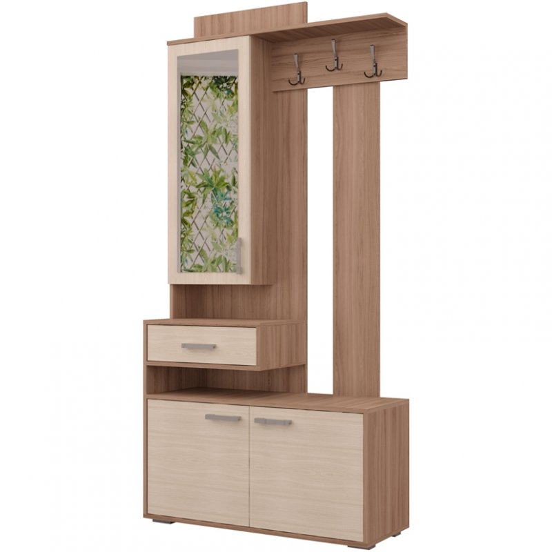 Прихожая ПР-11 поражает своей уникальностью. Она придётся по вкусу даже самому притязательному покупателю. Ведь прихожая экономит место, придаёт помещению современный вид и создаёт уют. ПР-11 включает в себя открытую вешалку с крючками, навесной шкаф с зеркалом и полочками и вместительную тумбу для обуви. А навесной ящик для мелочей с создаёт эффект парения, образуя под собой открытую нишу. Такой приём свойственен современному дизайну. Отметим, что все элементы прихожей не существуют сами по себе, они создают собой дополнительные полки и тем самым образуют единый ансамбль.