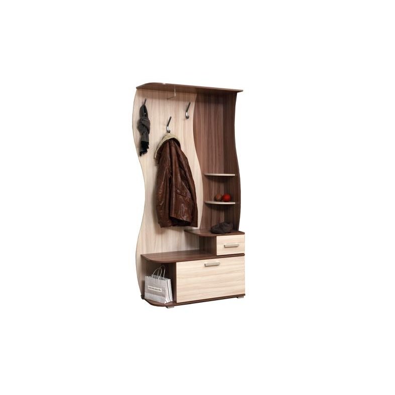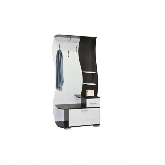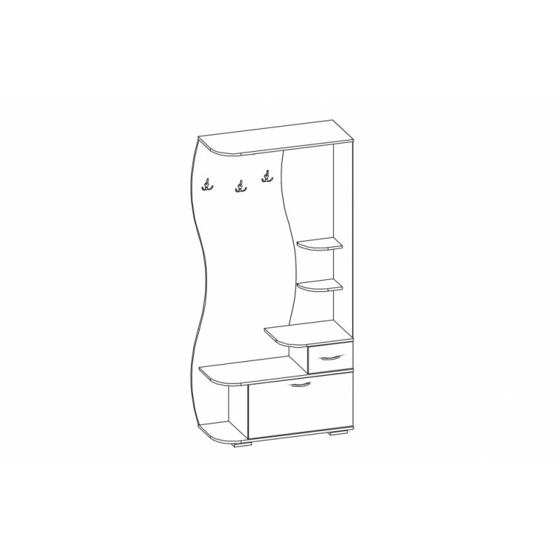 Красивая, современная конструкция, способная обеспечить помещению уют, комфорт и порядок. Плавные линии придают набору изящный, утончённый облик и отлично сочетаются со спокойной цветовой палитрой. Конструкция оснащается достаточным количеством полочек, которые можно использовать для хранения предметов гардероба и разных мелочей. Для размещения верхней одежды предусмотрены прочные крючки, а обувь можно убирать в большой нижний отсек с откидной дверцей.