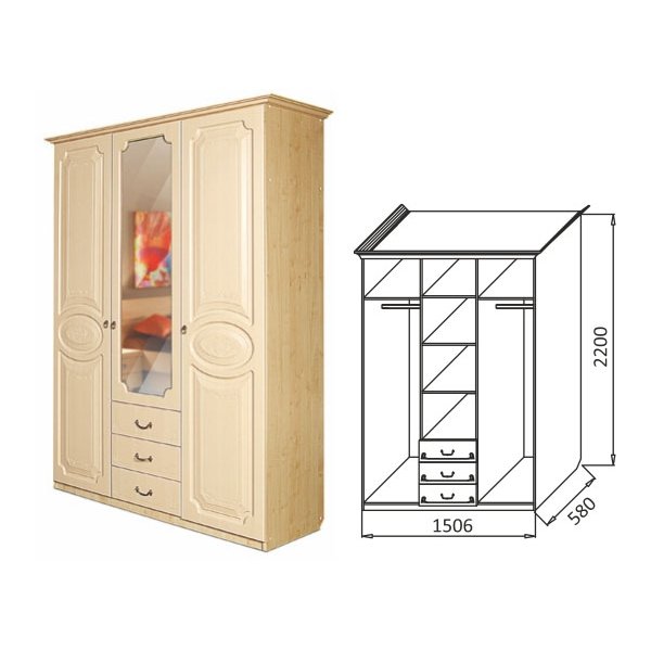 ШКАФ 3-Х СТВОРЧАТЫЙ