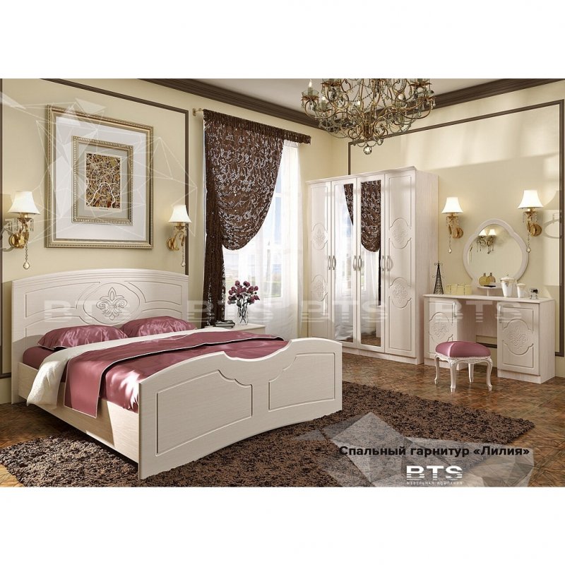 Спальный гарнитур «Лилия» – это сочетание элегантности и аристократического шарма. Благодаря классическому дизайну и естественному цветовому решению гарнитур создает ощущение изобилия света и пространства в комнате. Фасад каждого предмета мебели украшает изящная резьба в виде королевских лилий. Мебель для спальни в этом гарнитуре представлена полным набором всех необходимых модулей для удобного и комфортного обитания в ней. Симметричность в модулях гарнитура «Лилия» придает классическому стилю спальни завершенный дизайн.