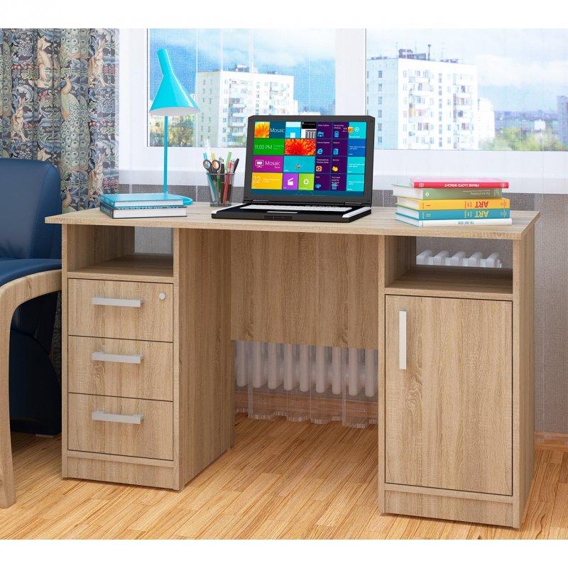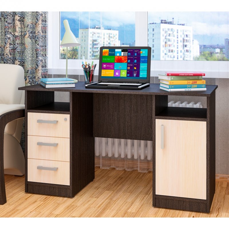 Фронда-4 - это большой письменный стол, двухтумбовый, очень популярный у бухгалтеров и руководителей, а также у людей, ценящих собственное время. И это неудивительно, ведь модель имеет две стационарные тумбы, симметрично расположенные по обеим сторонам стола. Каждая тумба рассчитана на 3 вместительных ящика, передвигающихся на шариковых направляющих и обеспечивающих полное выдвижение. Сверху ящиков с каждой стороны - открытая ниша для документов и принадлежностей, требующих быстрого доступа.