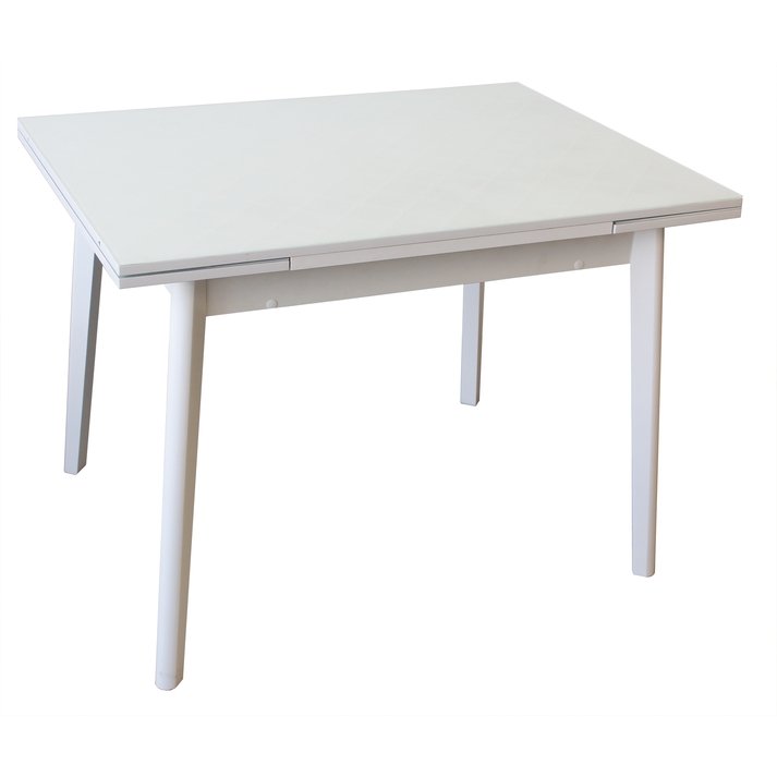 Обеденная группа с раздвижным столом ФУДЖИ -большой обеденный стол,в разложенном виде можно разместить до 10 человек.Стойки изготовлены из массива березы.Углы столешницы минимально закруглены.Стекло на столешнице имеет оригинальный матово-зеркальный рисунок.