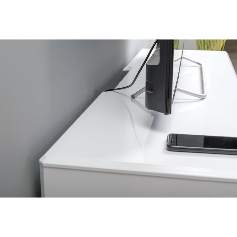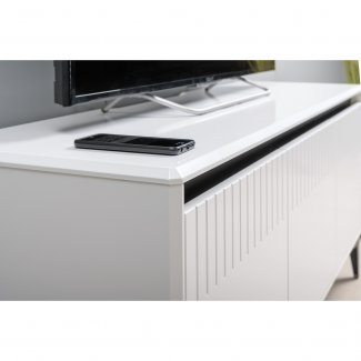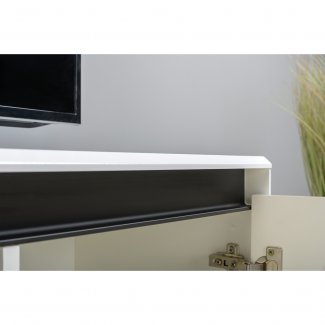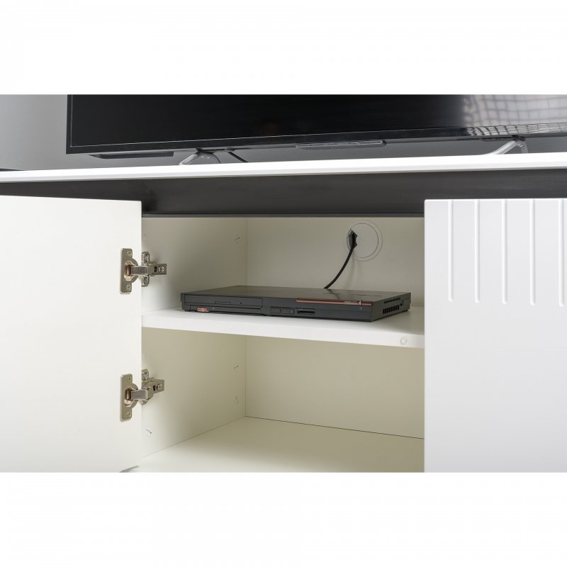 Тумба под тв МУАР-это компактное и стильное решение для гостиной.Глянцевые детали корпуса цветом и фактурой эффектно контрастируют с металлической фурнитурой.Фасады открываются за верхний край и оснащены доводчиками.Предусмотрена удобная система прокладки проводов для медиатехники.