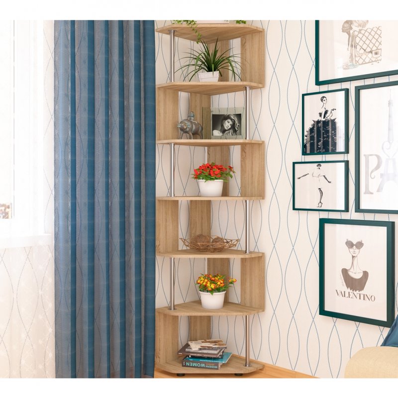 СПУ-3 – оригинальный угловой стеллаж. Оригинальность модели заключается в простоте и элегантности: изделие имеет 7 ярусов, соединённых хромированной трубкой в шахматном порядке. За счёт этого конструкция стеллажа выглядит воздушной, не утяжеляет пространство. Стоит изделие на регулируемых ножках цвета хром. Такой стеллаж будет великолепным практичным дополнением в любом помещении, зрительно увеличивая пространство и делая обстановку более современной.